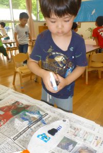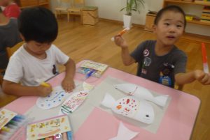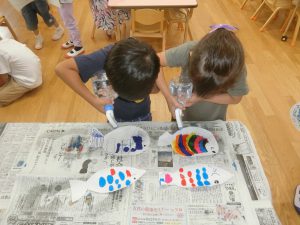 魚の形に切った和紙に