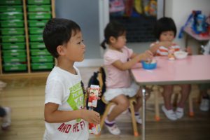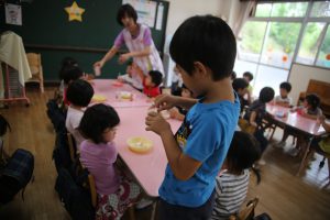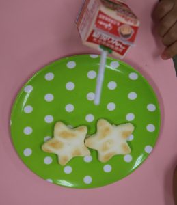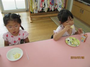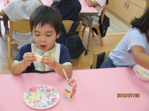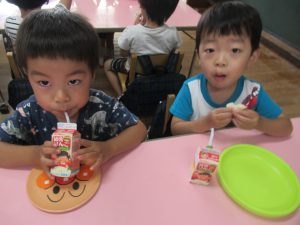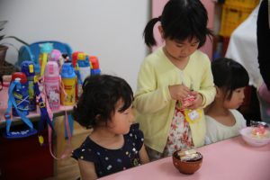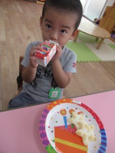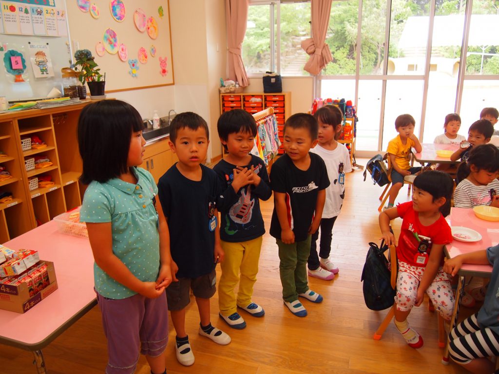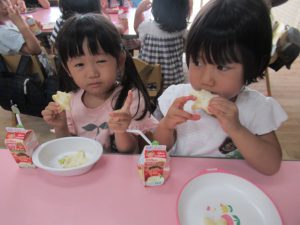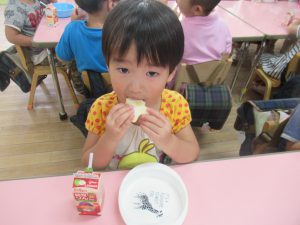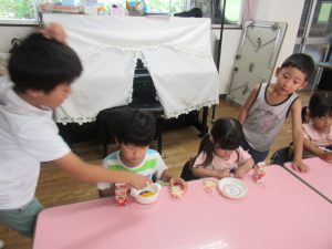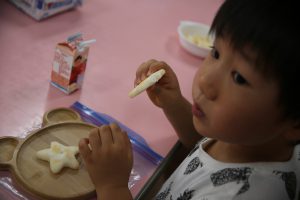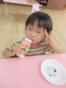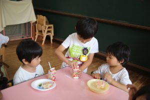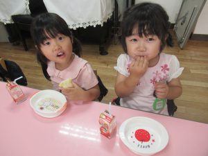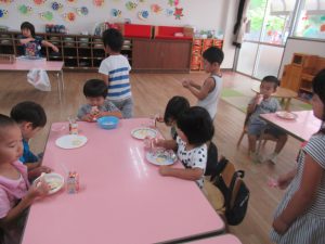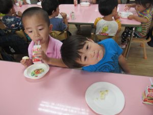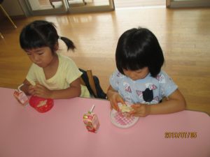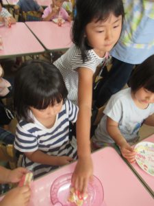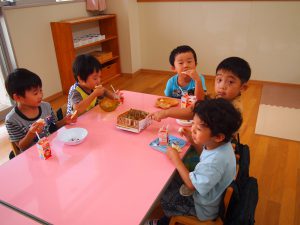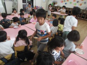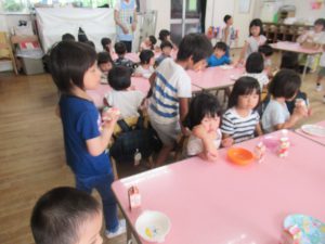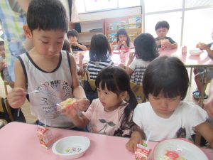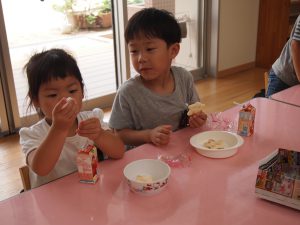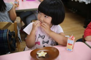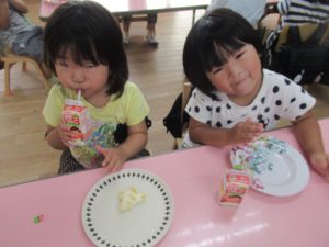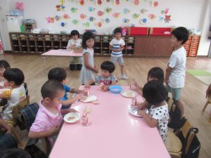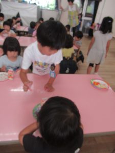 その後は、年長児がおやつ配りに来てくれました。