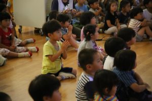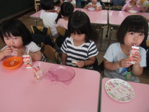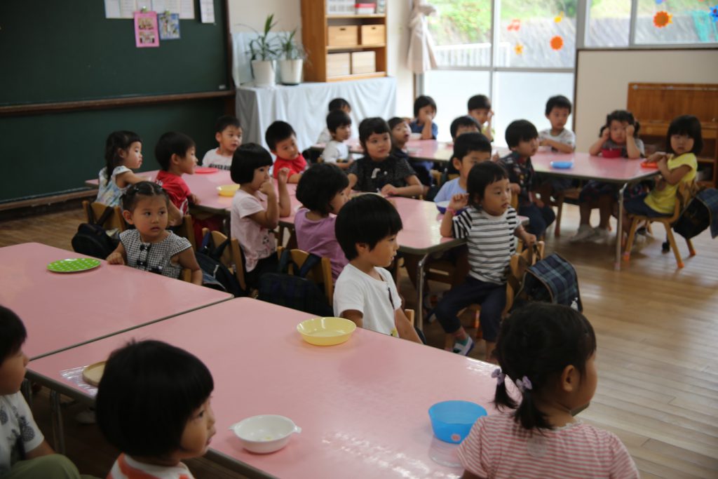 年少さんも、年長児の話に釘づけ!(おやつに釘づけ(笑))