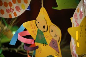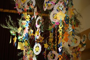 七夕飾りは、個人懇談会の週もホールに