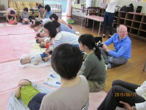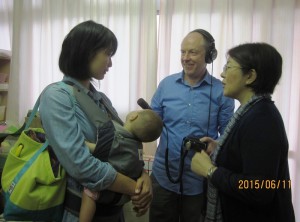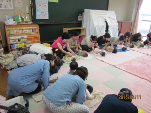 赤ちゃんの泣き声や、担当の七木田先生(当大学准教授)の歌う
