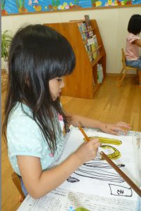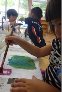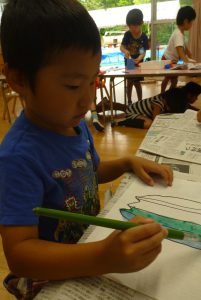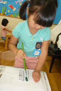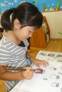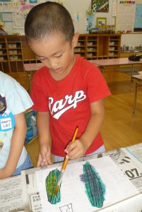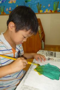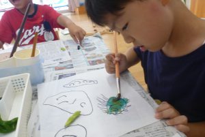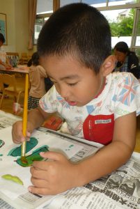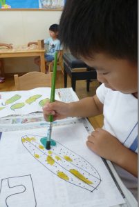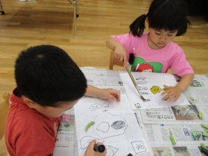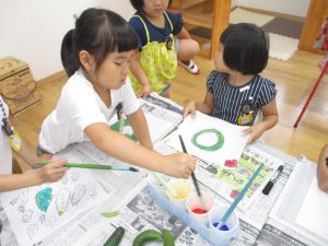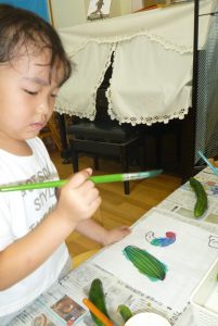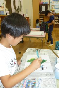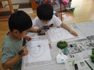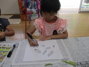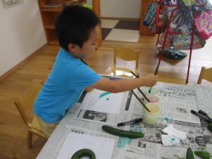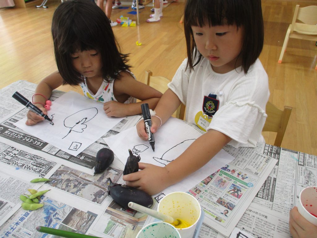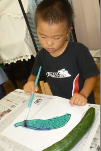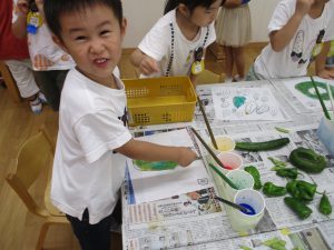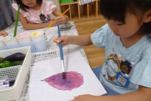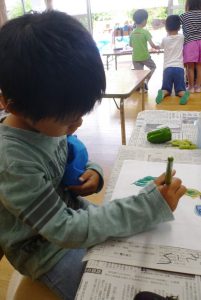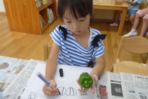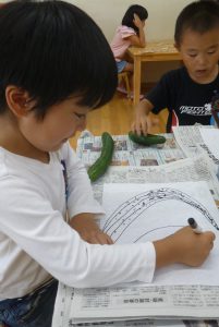6月にも、収穫野菜の玉ねぎを描いた年長さん