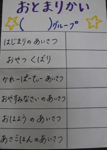 年長児、お泊り会に向けて、着々と準備が進んでいます。