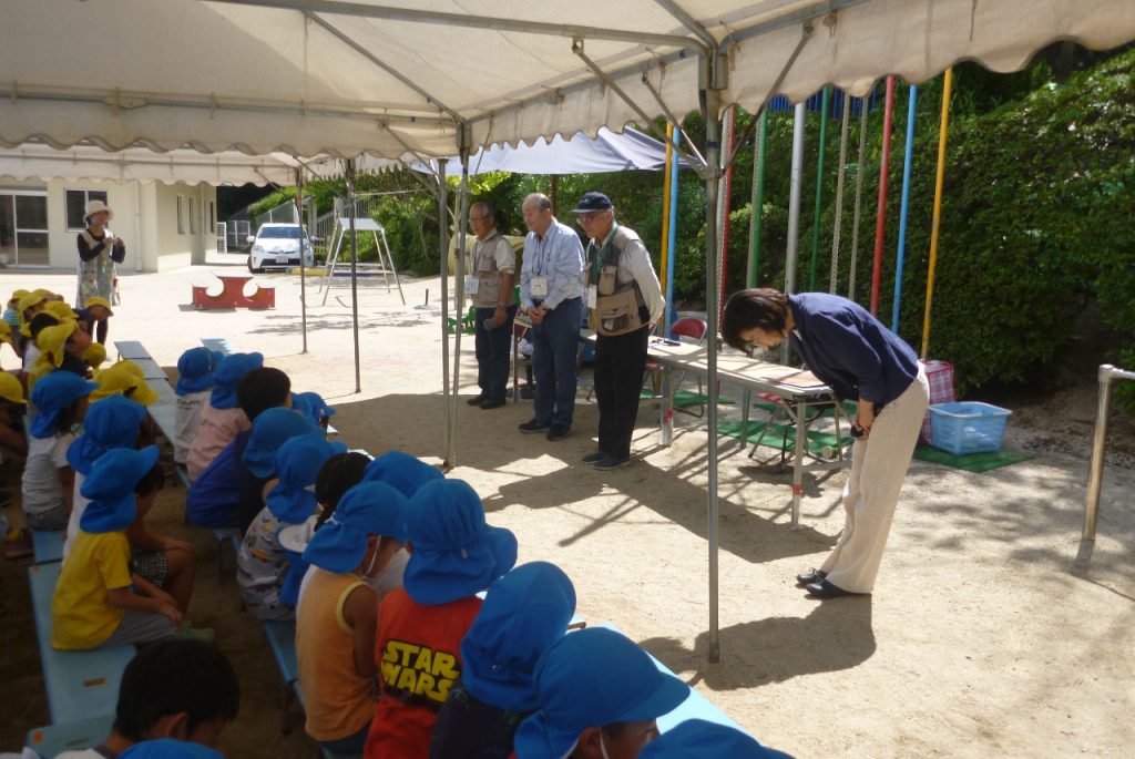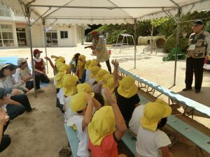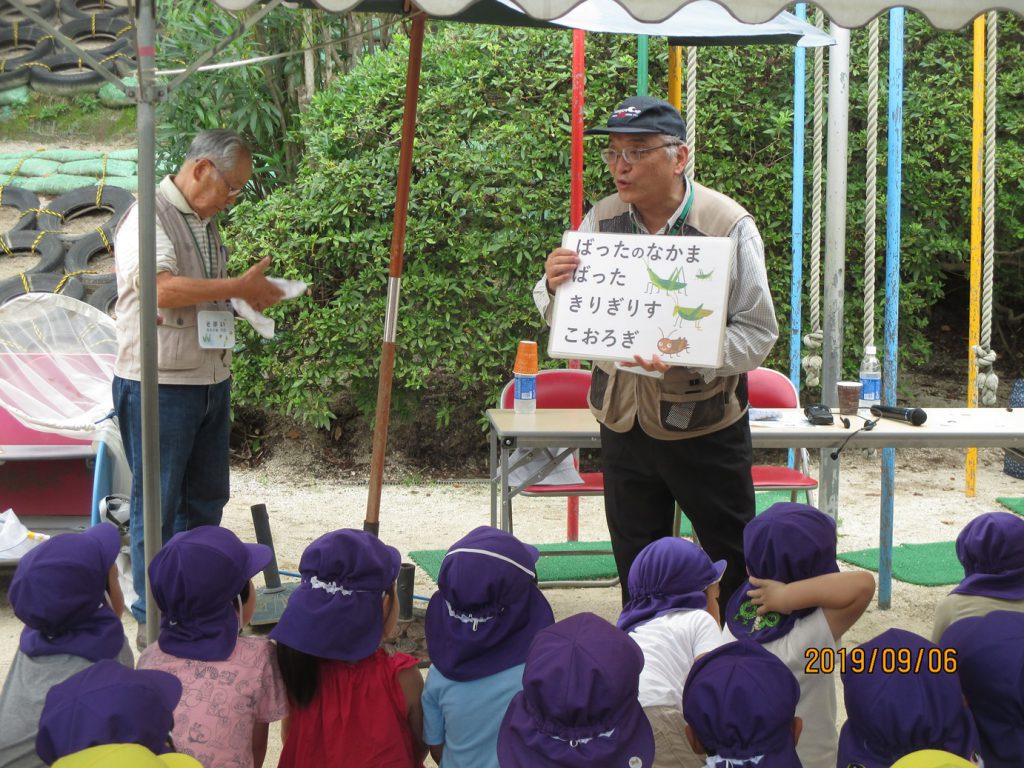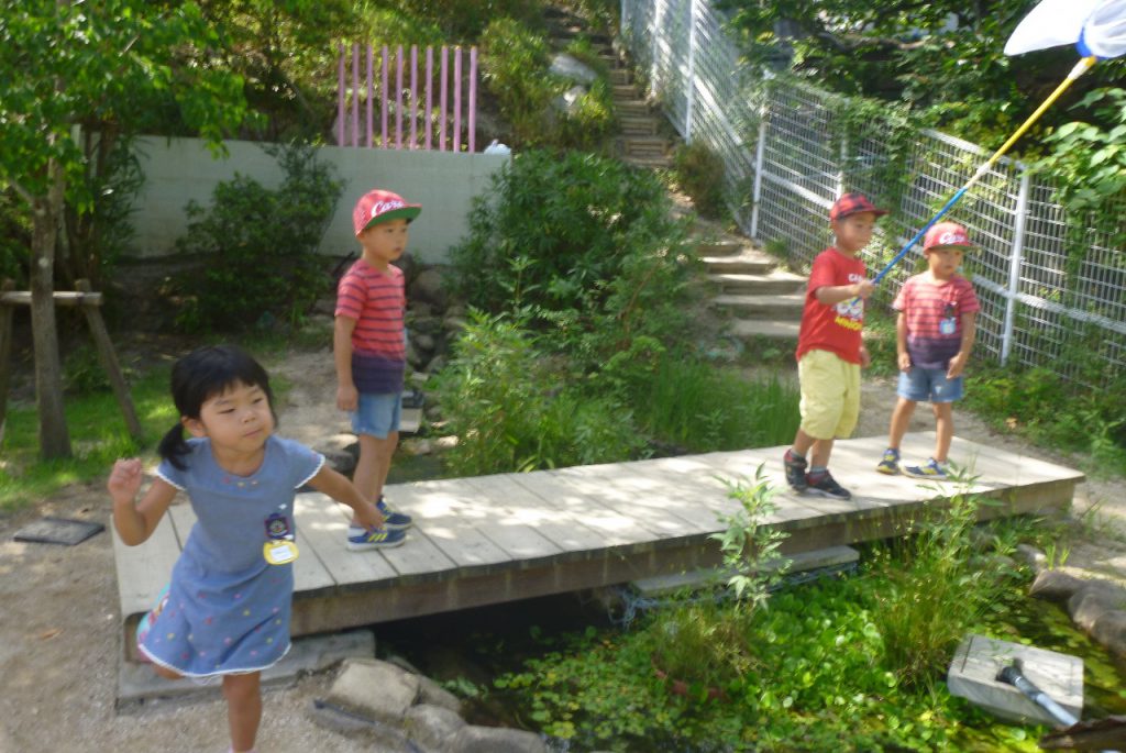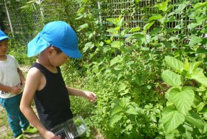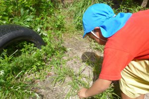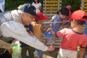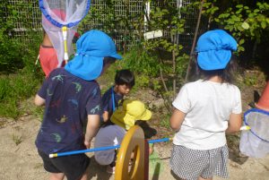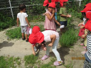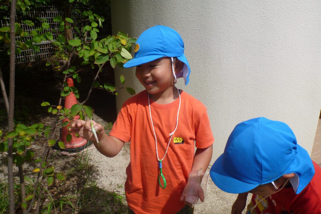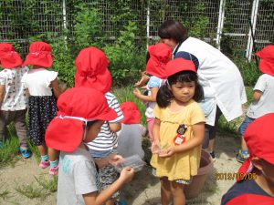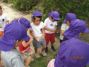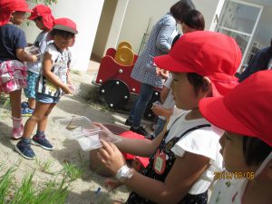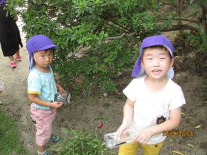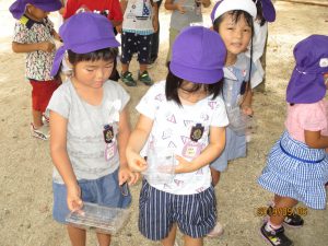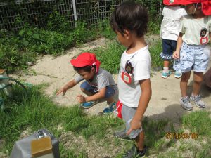 虫たちを、一人一匹ずつ園庭に離してあげました。