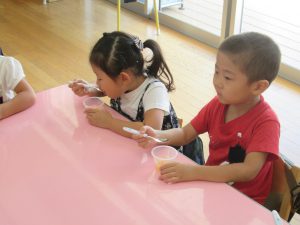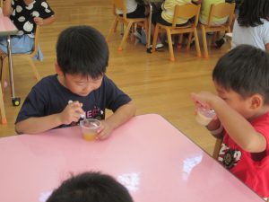 年中さん、第二回目のおやつ試食デーです。