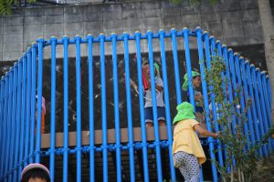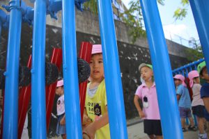 園庭からちらちら見えていたこの青の囲い…