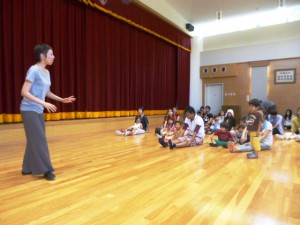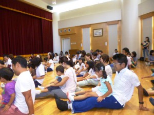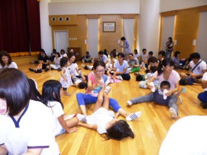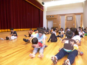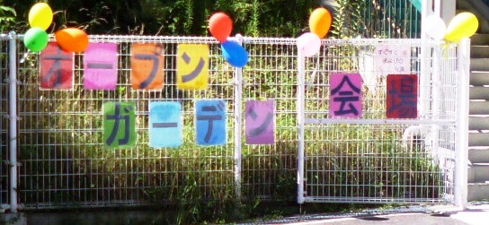 在園児の遊ぶ園庭で共に遊んだり、ホールでお話を見たりします。