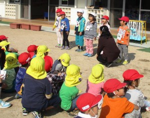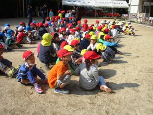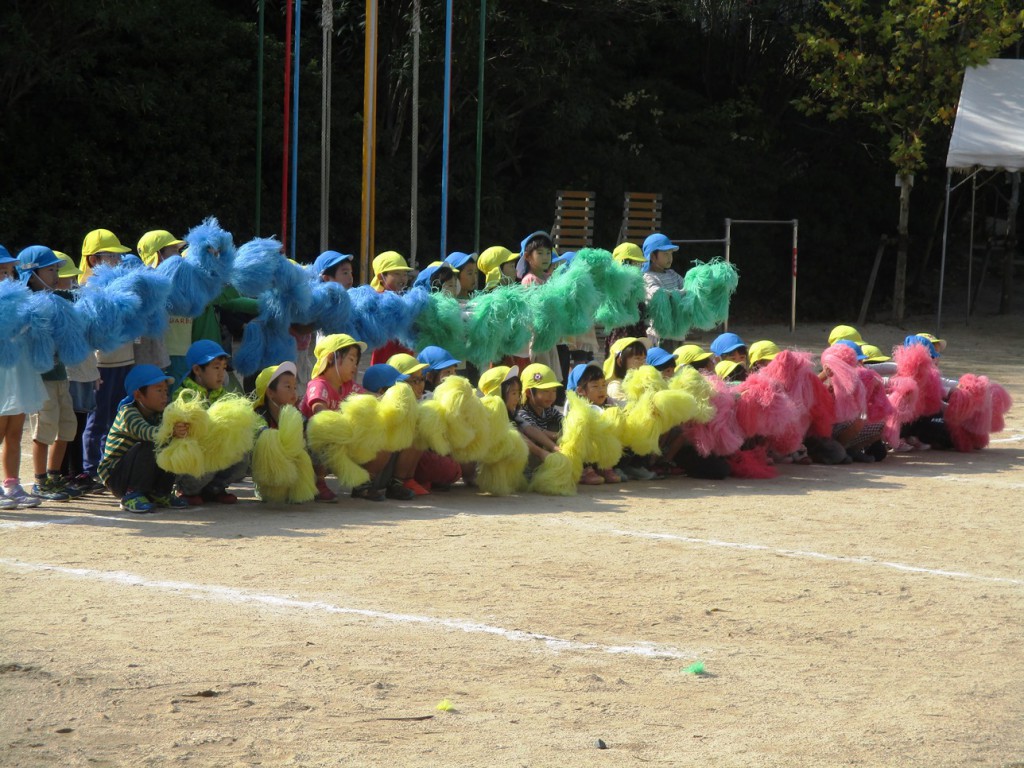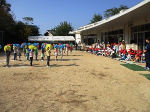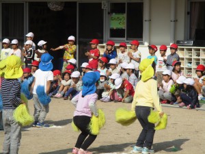 運動会でやったポンポンを一年生さんに見てもらうことにしました。