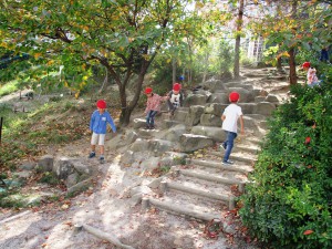 早速、園庭やさくらの森を縦横無尽に駆け回る子どもたちでした。