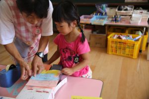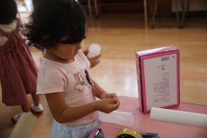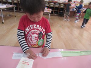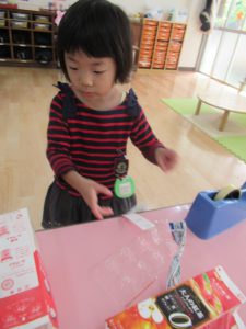 「自分のお顔をつけて、名札をつけたら完成じゃね!」