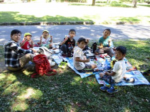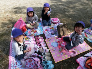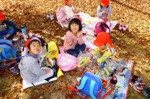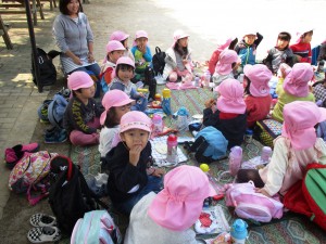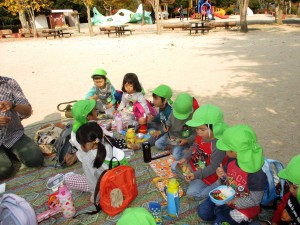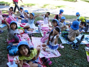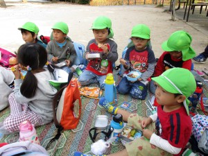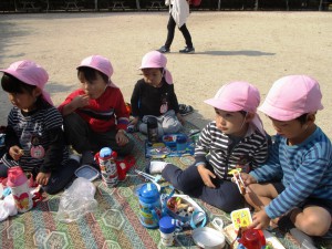 友だちと園外で食べる初めてのお弁当