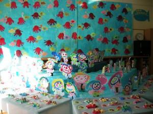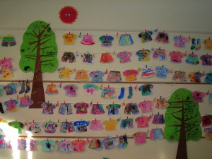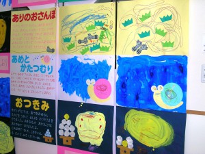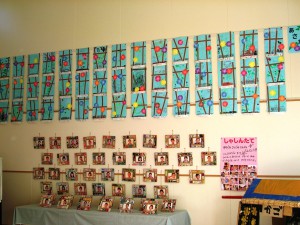 園での作品展では、年少→年中→年長・・・の順で、展示しています。