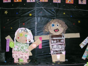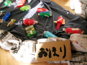 今回は、廃材や段ボールで人形を作りました。