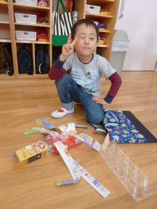 廃材を使って遊ぶことも増えました。