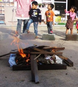 お待ちかね!年長さんの焼き芋屋さんの開店です
