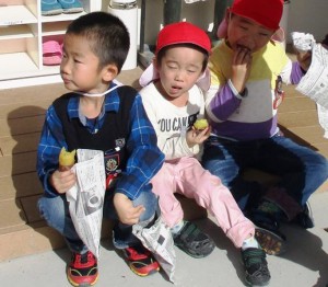 年少・年中・年長、どの学年にとっても、嬉しい楽しい焼き芋大会でした。