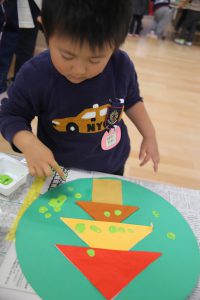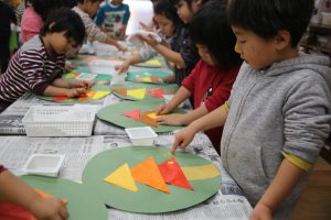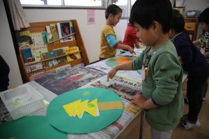 探してきた葉っぱを貼りつけて、