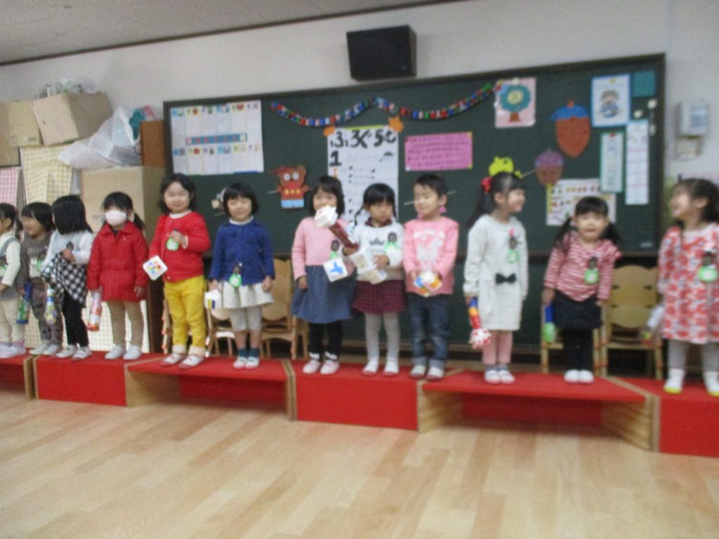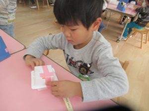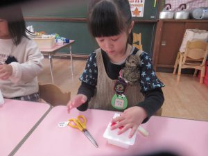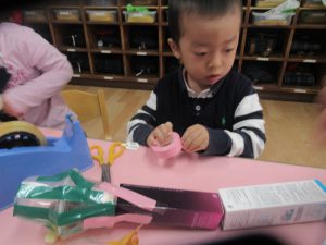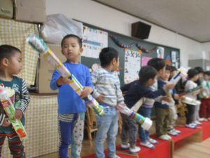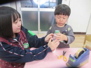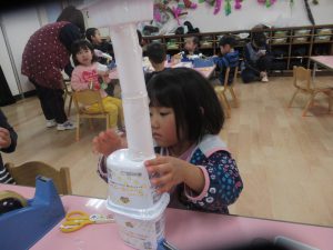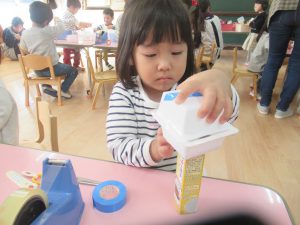 年少組でも、廃材遊びや自然物を使った遊びが