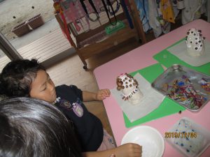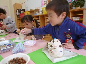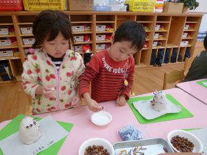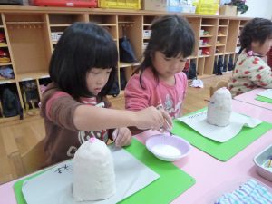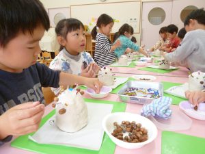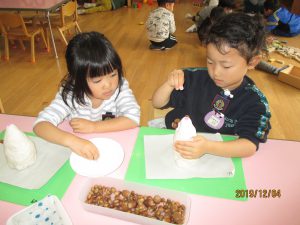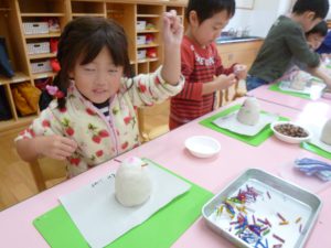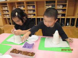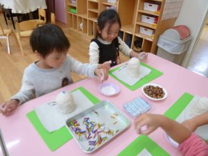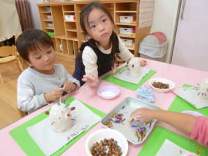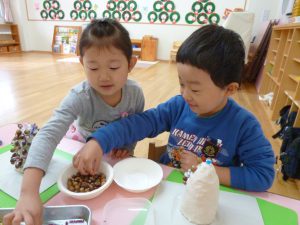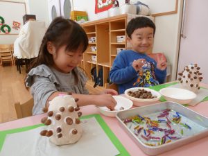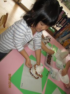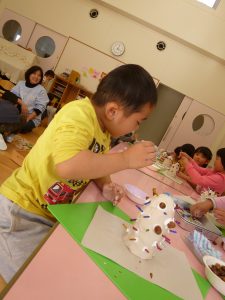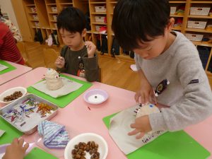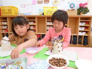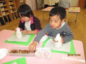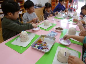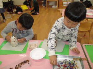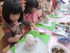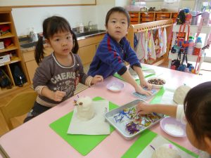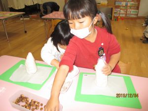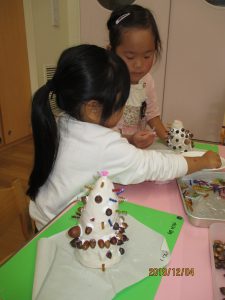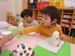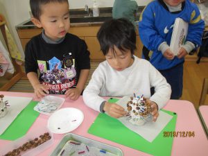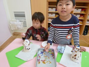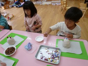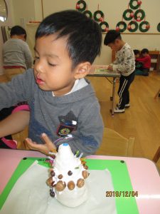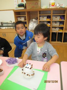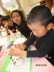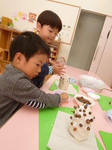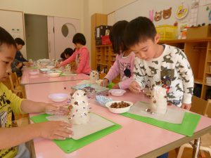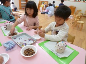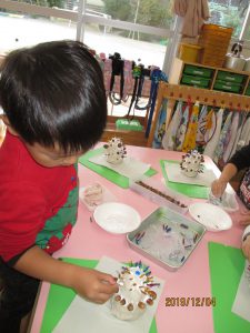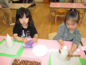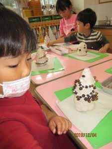 紙粘土ツリーの形や、飾りがそれぞれで、