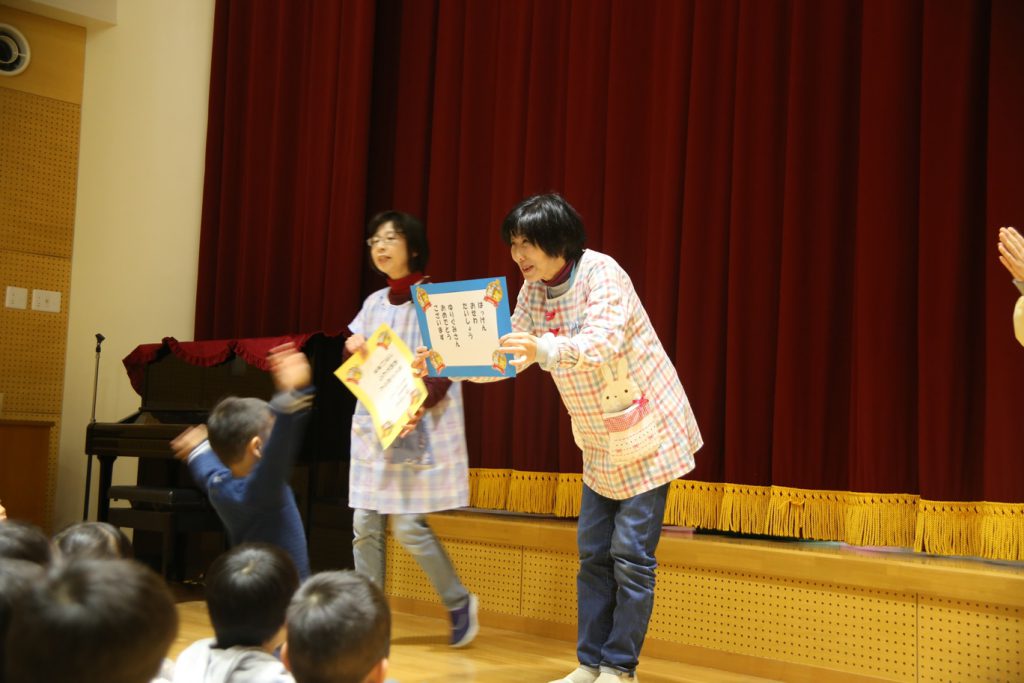 頑張ったことの表彰式を行い、