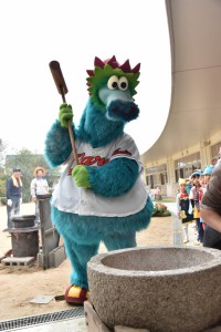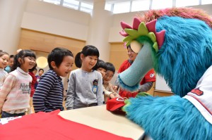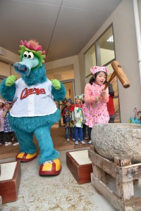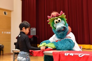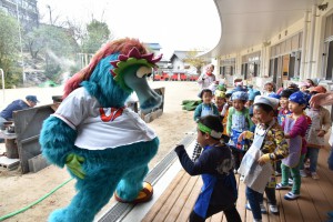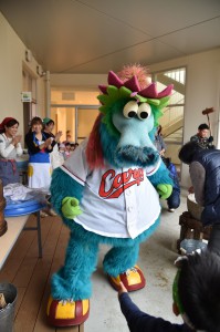 今年は、広島東洋カープのマスコットキャラクターのスライリーさんが来園し、