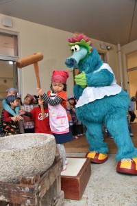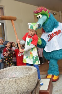 年長さん、大活躍のおもちつき、来年度の年長さんに引き継ぎまーす!!