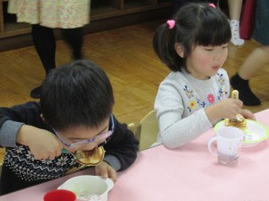 一緒に遊んでくれたり、おやつに「ホットケーキ」を作ってくれたりしました。