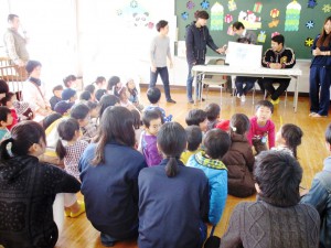 預かり保育の子どもたちのお部屋に来てくださいました。