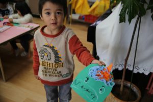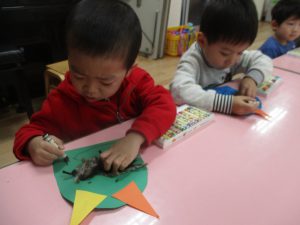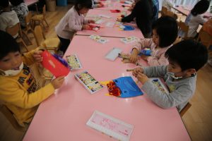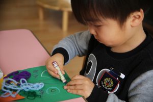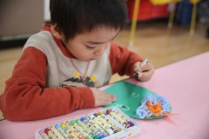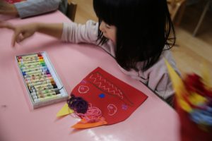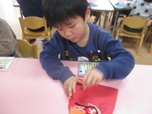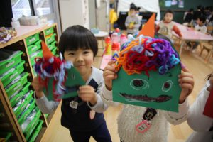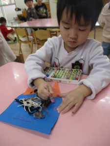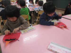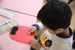 年少 鬼のお面作り