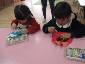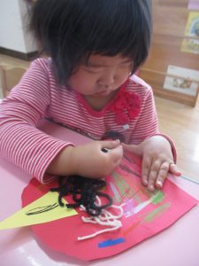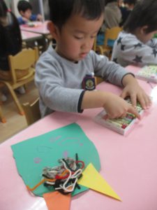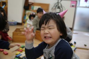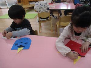好きな遊びの時間に、鬼のつのを作って