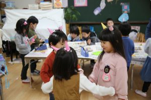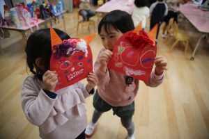 集いの時間に、豆まきや鬼のお話をしたり、