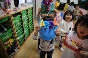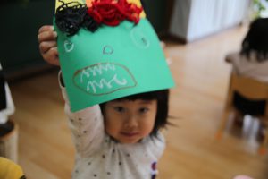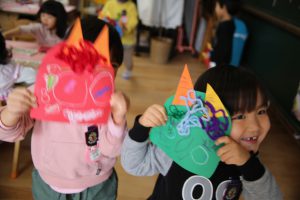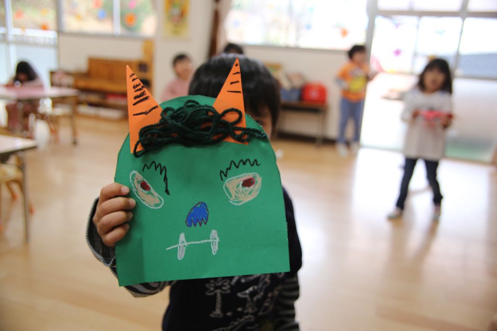 そこで、年少では、鬼のお面を