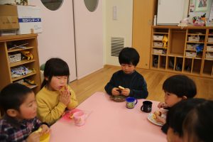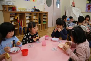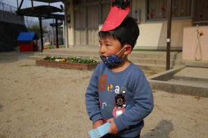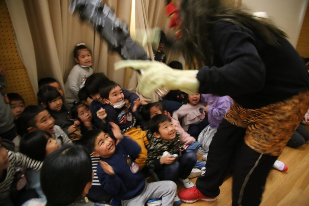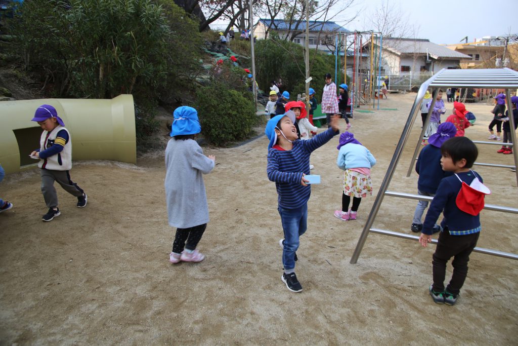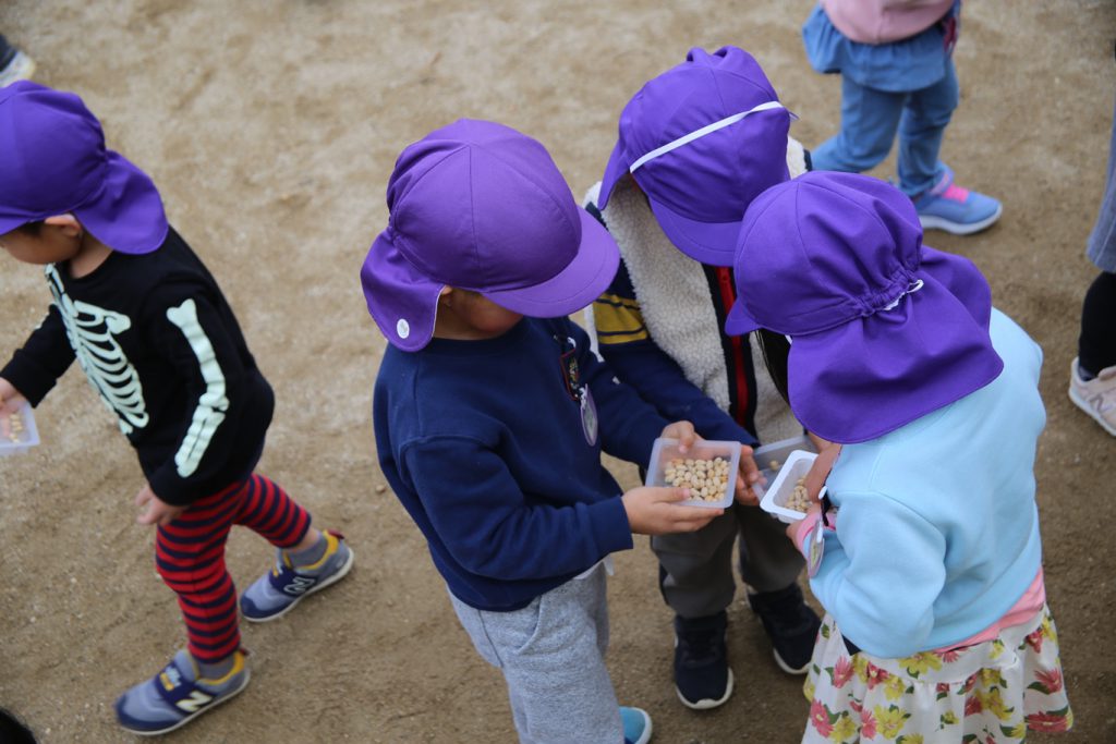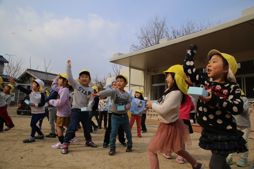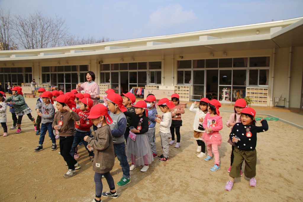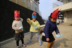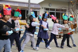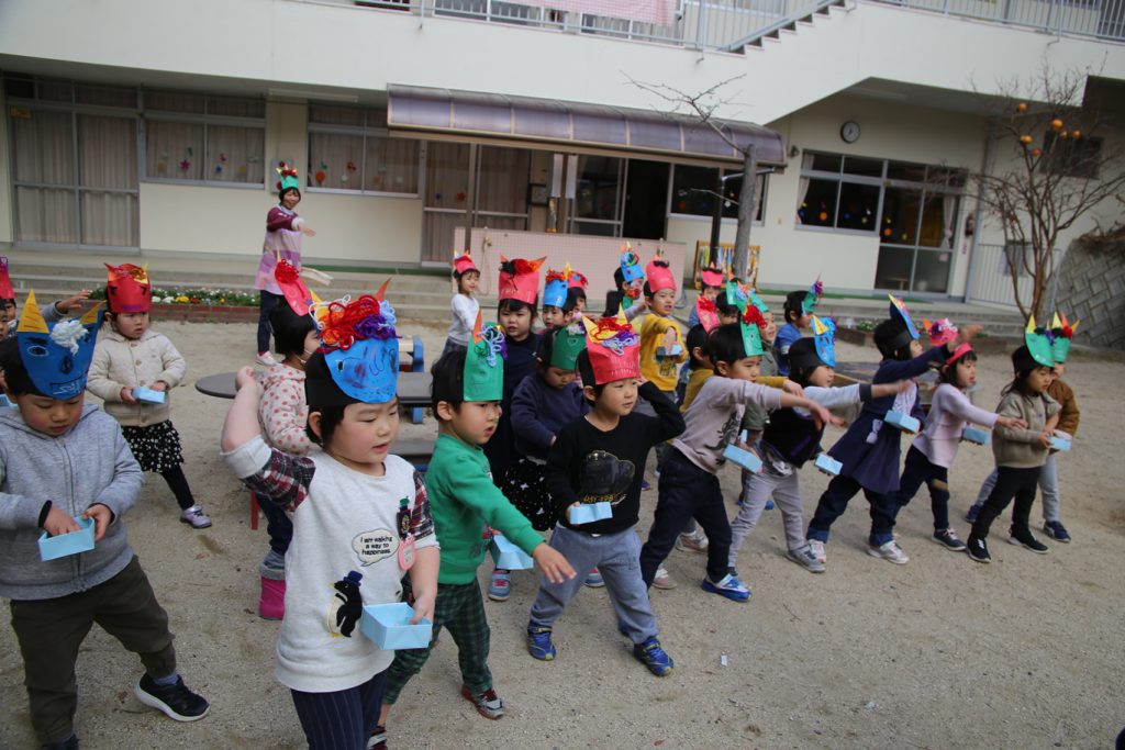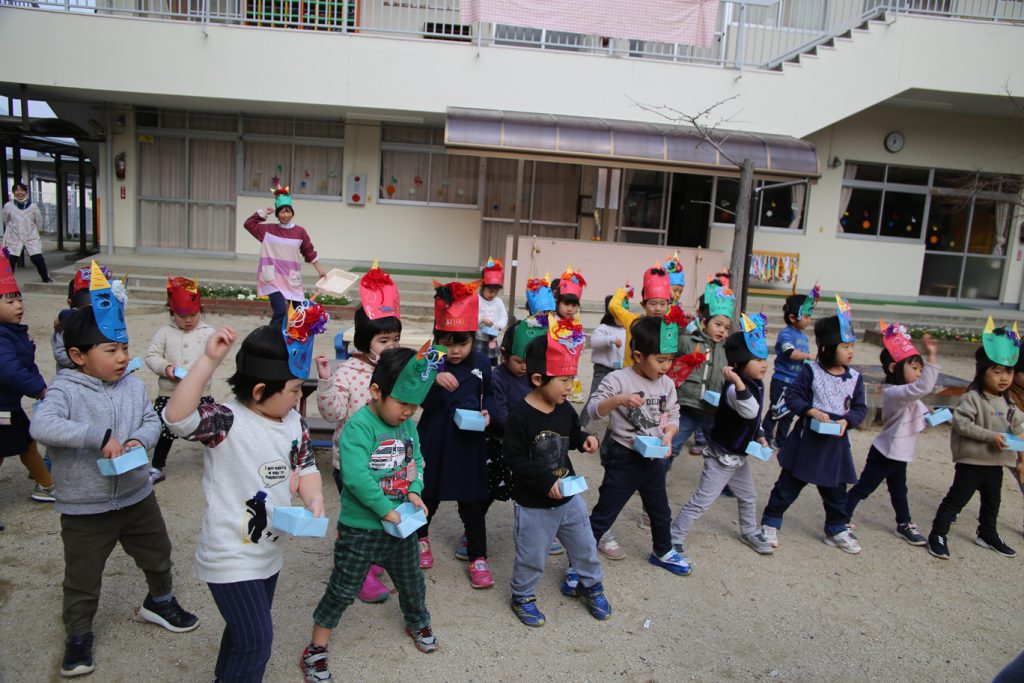 年長さんは幼稚園生活、最後の豆まき