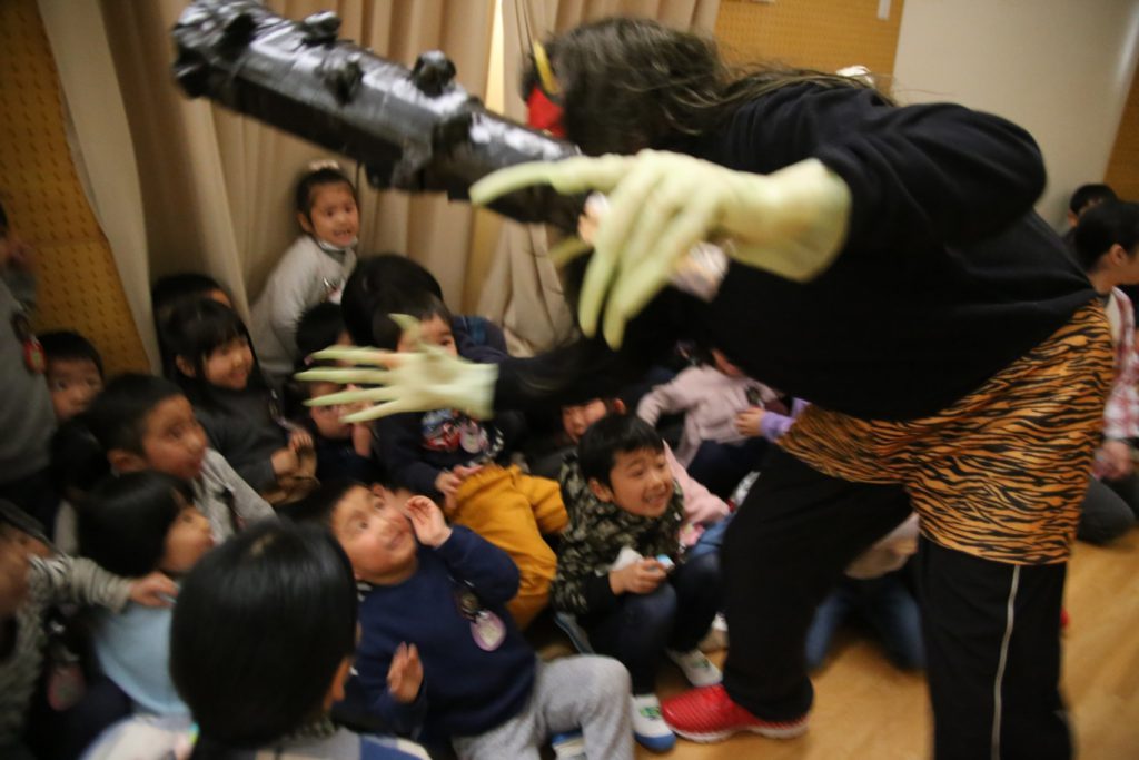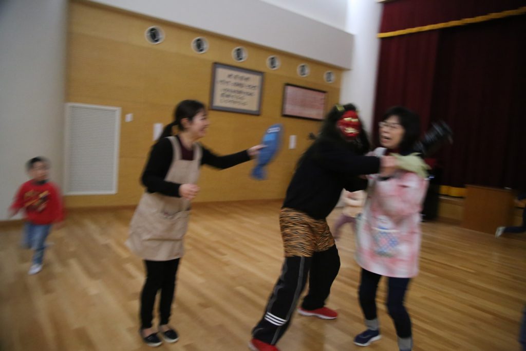 鬼に変身して、豆まきしました。?