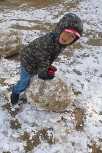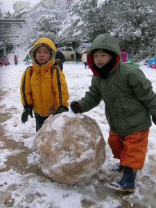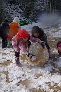 東区での積雪は頻繁にはないので、子どもたちも、地肌が出るまで雪を集めて堪能します。