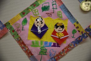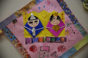 クラスの四方に飾られたお雛様。