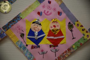 お雛様、お内裏様の顔を描いたら、着物と合体!