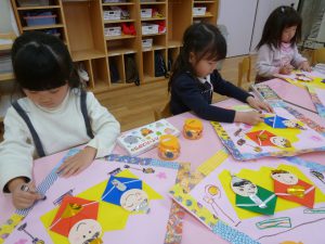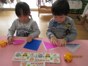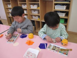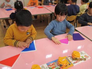 好きな色の折り紙で、着物作り!