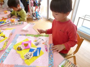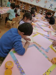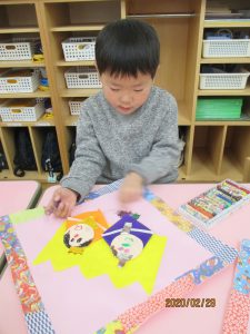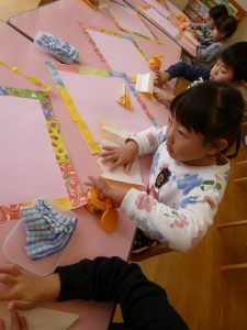 きれいな千代紙を貼っていきました。