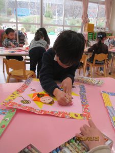 楽しみながらクレパスを走らせている