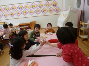 お雛様関係の絵本を見たり、歌を歌ったり、