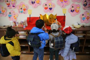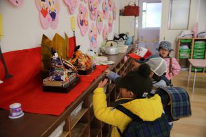 大勢のお雛様たちに囲まれてのひなまつり会!
