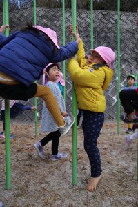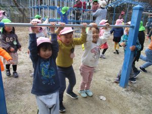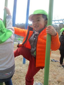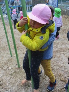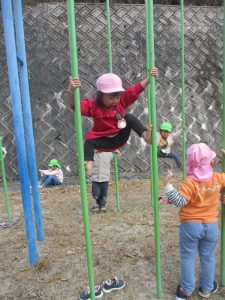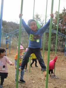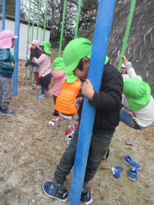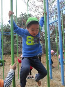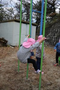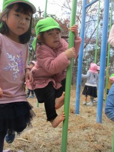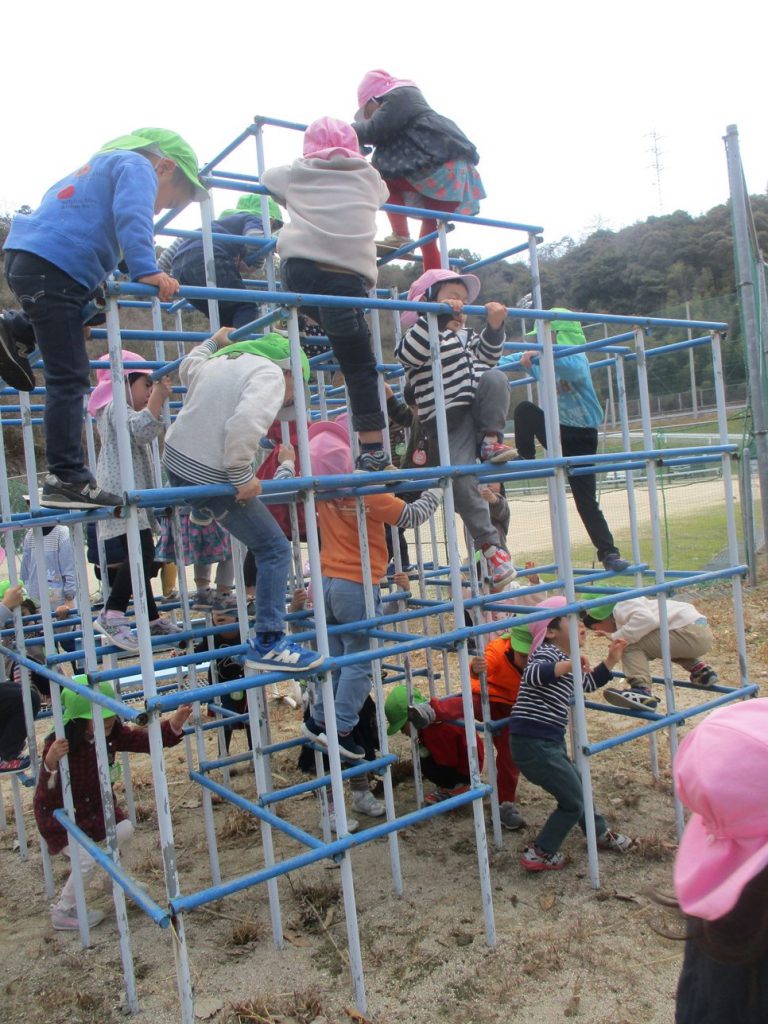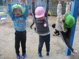 ぶら下がったり、よじ登ったり…