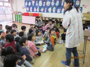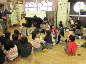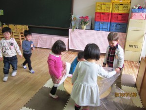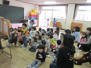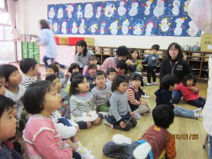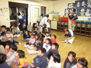 うさぎぐみの子どもたちが年少のお部屋に来るときは、