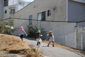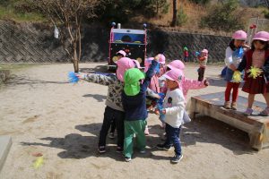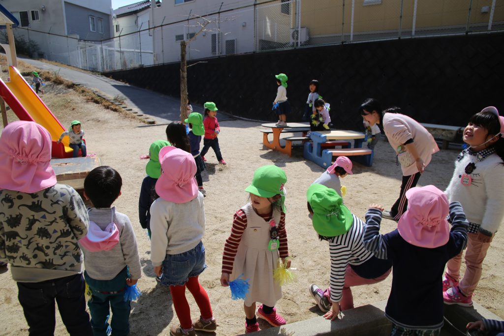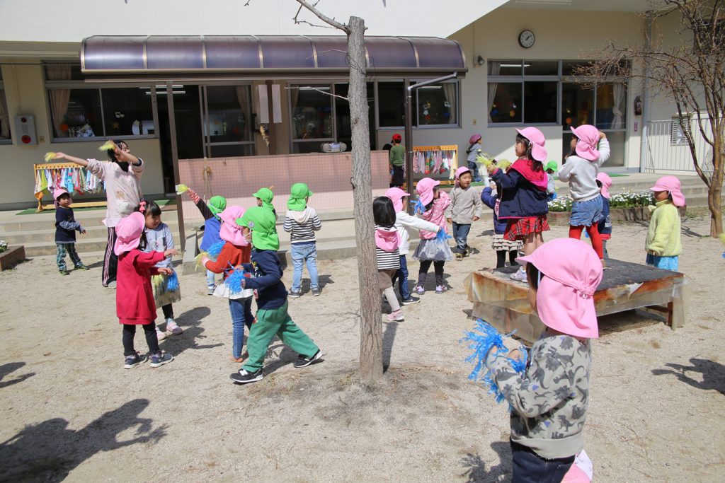 踊りが終わって、園庭を見渡し、