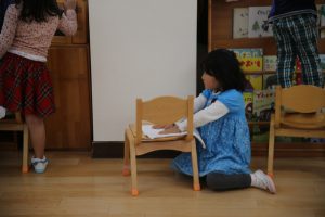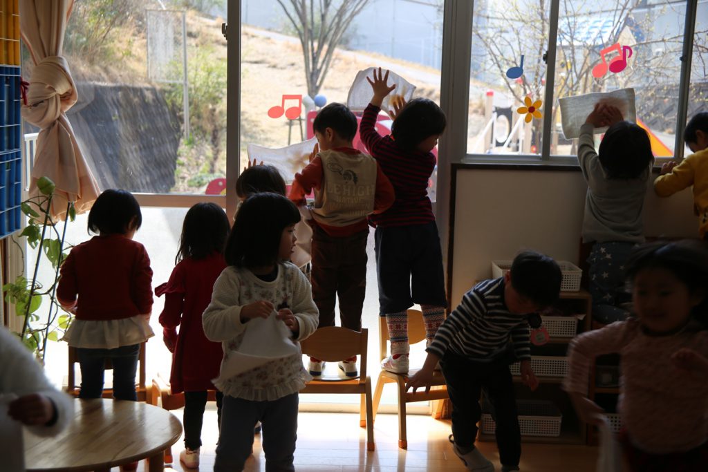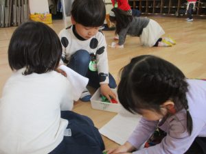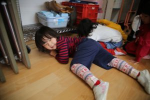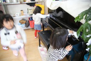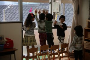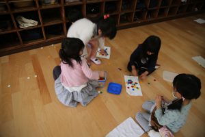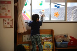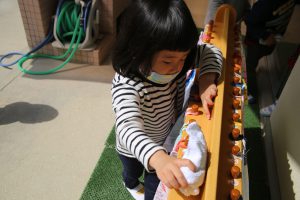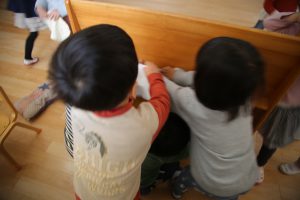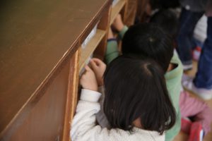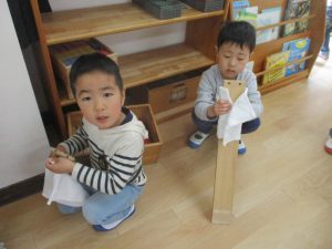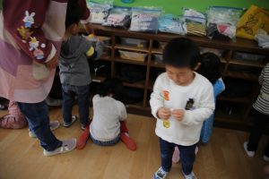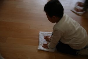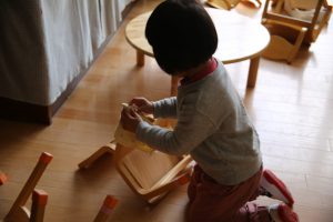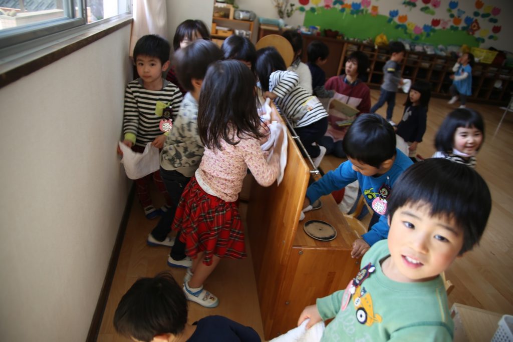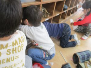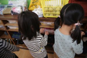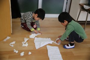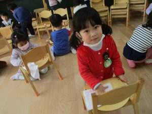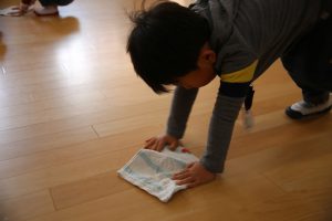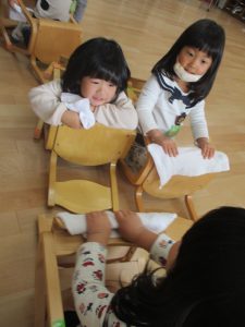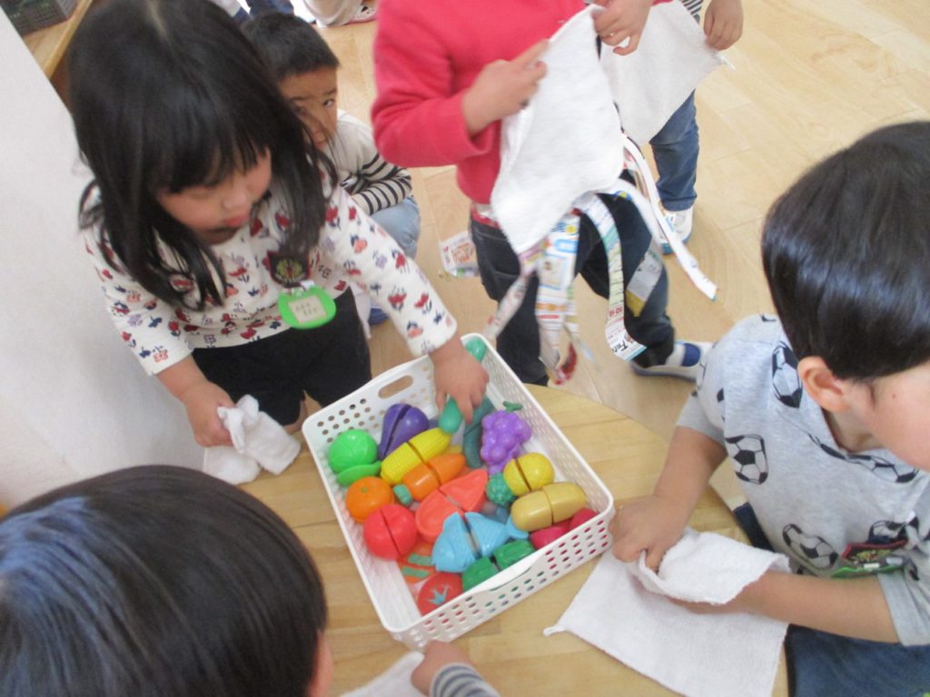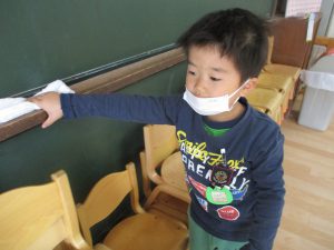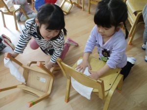 一つ一つの玩具を丁寧に雑巾で拭いていました。