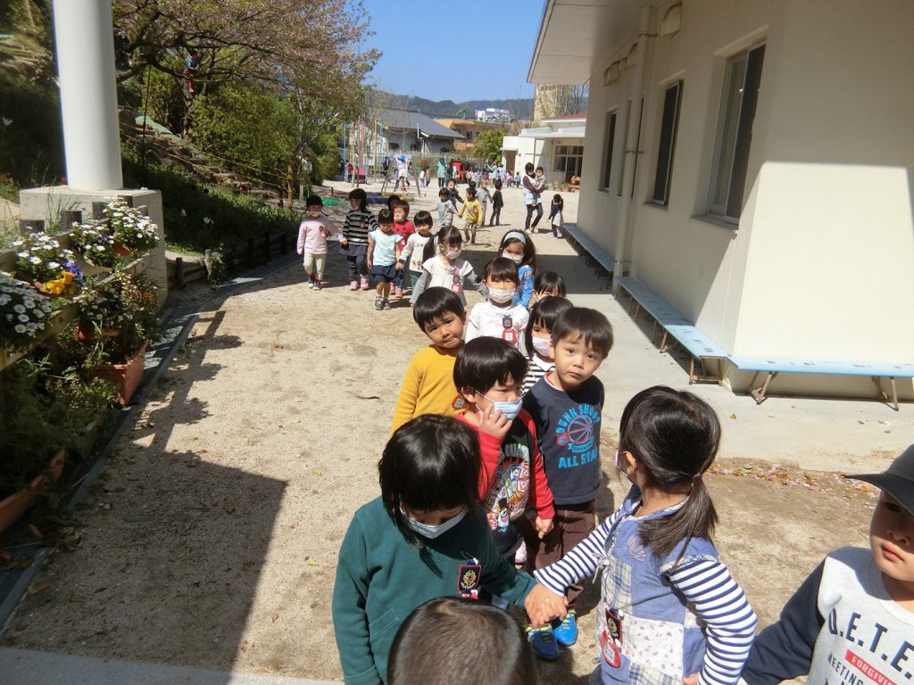 年中・年長児、初めての戸外遊び