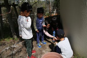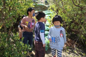 年中さんにとっては初めての下園庭、