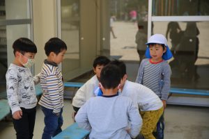 年長児を見習って年中児も、早速
