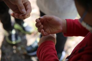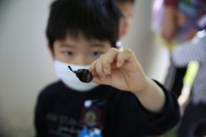 「ビオトープの生き物や石を